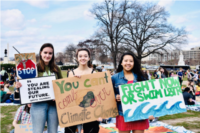 Cover photo: "Taking shorter showers won’t make a wasteland grow flowers. Do more. Stop corporations from killing our earth,” reads the sign from students of Wilson High School in Washington, D.C. Photo by Bridgette Adu-Wadier