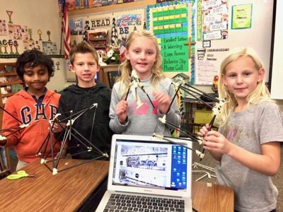 Amelia Scholte from Pam Leestma's 2nd grade class sharing the ISS truss she made proving the triangle shape is the strongest. Photo courtesy of Pam Leestma