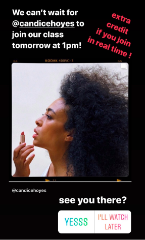 In a little over an hour-long class, she spoke to them about the genesis of her forthcoming project, “Zora’s Moon.” It is inspired by the writing and spoken words (that she found researching the archives at the Library of Congress) of Zora Neale Hurston. Hoyes shared that she first fell in love with Hurston’s writing when she was in her AP Literature class in high school. At a time when students were dealing with anger, fear and a sense of powerlessness, Hoyes spoke to them in a way that was both educational and comforting. You can watch her class with the students