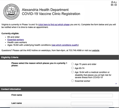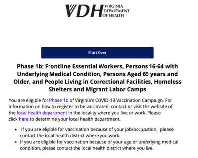 After clicking through several screens to figure out how to sign up a person who is 75 years or older, we were directed