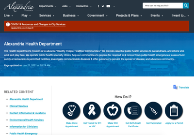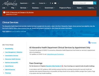 "All Alexandria Health Department Clinical Services by Appointment Only,"