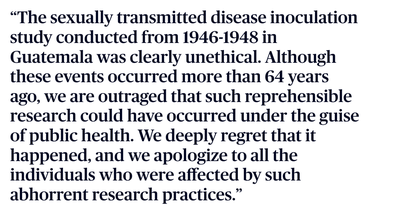 It’s often hard to get information on international trials, but in 2010, former President Obama established a bioethics panel to look at the Guatemala example in order to come up with guidelines for all medical studies.