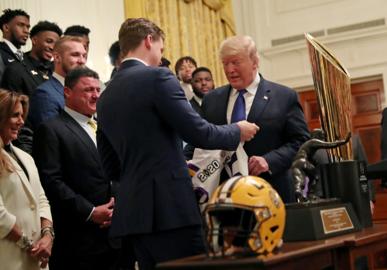 Jan 17 WATCH: Trump welcomes LSU Tigers to White House after college playoff win By Kevin Freking, Associated Press President Donald Trump has paid tribute to the Louisiana State University football team, college football's national champions. He says the team will be remembered as one of the greatest in college football history. Continue reading