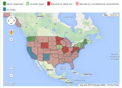 - Using the maps below, calculate the percent of states where same-sex marriage is legal now and was legal in 2012.