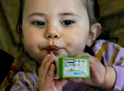 One-year-old Jaeliece Ortiz enjoys juice her mother bought with her SNAP card in Woonsocket, Rhode Island. Photo by Michael S. Williamson/The Washington Post via Getty Images. Poor families across the country will have a harder time stretching their food budgets after Friday, as stimulus funding for the Supplemental Nutrition Assistance Program (SNAP) automatically expires. The 13.6 percent boost in SNAP benefits the American Reinvestment and Recovery Act instituted in April 2009 ends Nov. 1. The Center on Budget and Policy Priorities found that the cuts translate into $29 per month less for an average family of three. They will be left with $319 per year or $1.40 per person per meal, based on cost estimates from the Department of Agriculture’s “Thrifty Food Plan.” Since the funding increase came from federal dollars, every SNAP recipient will experience reduced benefits. (See GovBeat’s maps of SNAP cuts by state and SNAP participation by state and congressional district). Ending the additional funding will save the government $5 billion in 2014, says CBPP. There’s concern, though, that these cuts will affect more than just the 48 million SNAP recipients. CBPP has found that every $5 of food stamps generates up to $9 of economic activity. The 41 members of the Senate and House Farm Bill conference committee meet Wednesday to discuss future cuts to SNAP. WonkBlog rounds up the various situations that could reduce benefits further. H/T Simone Pathe A free press is a cornerstone of a healthy democracy. Support trusted journalism and civil dialogue. Donate now