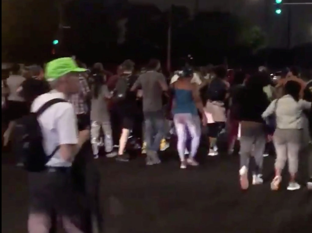 CHICAGO — An angry crowd shouted and threw bottles at Chicago police after an officer fatally shot a man on the city’s South Side Saturday, prompting the arrest of at least four demonstrators. Chicago police patrol chief Fred Waller told a news conference that the man was shot in the South Shore neighborhood after police officers on foot tried to question him because “the bulge around his waistband” suggested he was armed. The man became combative and eventually broke free from the officers, Waller said. “They thought he appeared to be reaching for a weapon, which he did have a weapon on him, and the officers tragically shot him,” he said. The unidentified man was taken to a local hospital and pronounced dead. Waller said police believe the man did not have a concealed carry permit for the semi-automatic weapon. He also had magazines of ammunition, Waller said. Protesters march after a man was shot by police in Chicago, Illinois, on July 14, 2018 in this still image taken from a video obtained from social media on July 15, 2018. Photo by Legal Help Firm via Reuters Immediately after the shooting, an angry crowd gathered and began jostling with police, who had cordoned off the area. Waller said protesters threw bottles and jumped on top of a squad car. Police then moved in wielding batons to stop them. “It got a little bit out of hand. Several arrests were made,” Waller said. Police spokesman Anthony Guglielmi tweeted that four protesters were arrested. Several police officers were slightly injured in the scuffles, Waller said, and some squad cars were damaged. READ NEXT: When black death goes viral, it can trigger PTSD-like trauma After nightfall, protesters continued to mill around the neighborhood with police occasionally chasing them away. Video showed one protester thrown to the ground surrounded by police holding batons. Chicago has a troubled history of police shootings. The city erupted in protest in 2015 after the release of a video showing white police officer Jason Van Dyke shooting black 17-year-old Laquan McDonald 16 times in 2014. Van Dyke was charged with murder. McDonald’s death led to the ouster of the police chief and a series of reforms designed to prevent future police abuses and to hold officers accountable. A free press is a cornerstone of a healthy democracy. Support trusted journalism and civil dialogue. Donate now