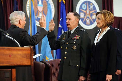 Secretary of Defense Robert M. Gates delivers the oath of office to U.S. Army Gen. Keith Alexander during the activation ceremony of U.S. Cyber Command on Fort Meade, Md., May 21, 2010. Department of Defense photo by Cherie Cullen The National Security Agency’s director and his deputy are leaving the agency in March, White House press secretary Jay Carney confirmed Thursday. Army General Keith Alexander, who’s held the NSA director position for eight years, came under criticism when contractor Edward Snowden leaked documents that revealed widespread surveillance on telephone, email and social media data. NSA spokeswoman Vanee Vines said the process for picking his successor is under way. “This has nothing to do with media leaks, the decision for his retirement was made prior; an agreement was made with the (Secretary of Defense) and the Chairman for one more year – to March 2014,” Vines told Reuters in an email. H/T Cindy Huang A free press is a cornerstone of a healthy democracy. Support trusted journalism and civil dialogue. Donate now