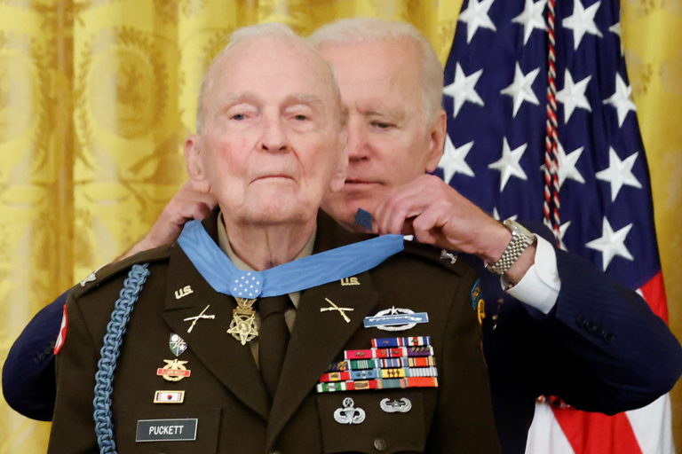 May 21 WATCH: Biden bestows Medal of Honor on Korean War veteran By Josh Boak, Associated Press It took a policy change for retired Col. Ralph Puckett Jr. to receive the military's highest honor. The 2020 defense policy bill removed a requirement that such awards be given within five years of a valorous act. Continue reading