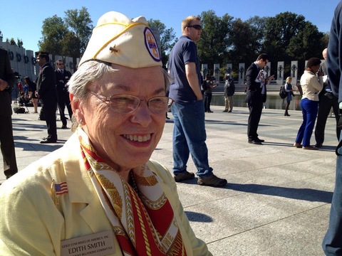 Iraq war veteran Bill Garcia voiced his frustration with the government shutdown at the World War II Memorial Tuesday. Photos by Cindy Huang Dressed in navy sweat pants and sweatshirt and sporting an “Iraqi Freedom Veteran” hat, Bill Garcia used two canes to navigate his wheelchair around the World War II Memorial in Washington, D.C., Tuesday. He lost the use of legs in the Iraq war and has since been receiving veterans disabilities and vocational rehabilitation. But if the partial government shutdown — now on Day 15 — drags on much longer, the federally employed veteran fears his disabilities payments could soon stop along with his salary. “The uncertainty broods over you, adds to the PTSD, adds to the anxiety,” Garcia said. “It’s stressful.” Garcia said he lost two friends in the war. And another one of his friends lost an arm in combat. “We were there when we were called to war,” said Garcia. And looking out onto the memorial, he said, “You said you’d take care of us after we do this.” Edith Smith, widow of a Vietnam veteran, came to the rally to show her support. Garcia traveled from northern Virginia to attend a rally at the memorial. The non-partisan event was organized by a coalition of 33 veteran organizations to call for protection of veteran benefits and services and an end to the government shutdown. Hundreds of veterans and supporters from organizations like Iraq and Afghanistan Veterans of America, Disabled American Veterans, American Legion, Veterans of Foreign Wars and National Military Family Association, among others, were in attendance. The memorial, which has been closed since the shutdown began on Oct. 1, has become a symbol of the public’s frustration. Barriers to the park have been routinely broken, kicked off when a group of visiting World War II veterans were escorted past the gates by members of congress on the very first day of the shutdown. On Sunday, a group of protesters, led by Republican Senators Ted Cruz of Texas and Mike Lee of Utah, ripped out the gates and dropped them off at the White House gate. Department of Veteran Affairs Secretary Eric Shinseki warned Wednesday that if the shutdown continues, the department will be unable to issue disability and pension checks come Nov. 1, and will see an increase in the backlog on disabilities claims. “We have been assured that budget won’t be balanced on backs of veterans, but here we are today,” Steve Gonzales, from the American Legion, said to the morning crowd at the memorial. Gonzales said that veterans who are transitioning back to civilian life rely on programs to fund their education, provide them with temporary housing and assist them in the job search. And many of these programs have lost or are in danger of losing government funding. Standing in the middle of the barricaded memorial, Ray Kelley from the Veterans of Foreign Wars, told the crowd that the government must make veterans a priority. “It’s time to take the barrier behind you down, not for a while, not for a political stunt, but forever,” said Kelley. And this loss of funding is also hitting military families that rely on benefits. Edith Smith is a widow of a Vietnam veteran who died of service-related injuries in 1998. She receives Social Security and Dependency and Indemnity Compensation, a payment to survivors of servicemembers who died in the line of duty or as a result of service-related injuries. She’s not worried about the government halting her own benefits, but rather those of younger widows, many of whom have become the sole provider of their families. “Many of our young widows are enrolled in college,” said the 73-year-old widow. “How will they make their college payment and put food on the table?” Dressed head to toe in a light pastel yellow and sporting a red and white silk scarf, Smith holds her composure as she expresses her frustration. “You cannot judge someone until you walk in their shoes,” said Smith. She admits she doesn’t know what’s keeping her political leaders from coming to a deal and opening the government, but she says they “are responsible and accountable for things and I don’t think they’ve done their due diligence.” A handful of veterans who came out to the memorial said they were not heavily impacted by the shutdown. They came to express their outrage at the way the government has treated veterans. Mark Morse is an Afghanistan war veteran and federally furloughed employee. With the promise of retropay, he said he’s not overly concerned with his financial future. But he said the government is failing to “honor [their] duty to those who served.” A park ranger who formerly worked at the National Mall, Morse said it’s difficult to see the memorial closed. “It’s highly disrespectful of those the men and women who have made sacrifices for this country,” said Morse. Some veterans see the closed memorial as a reminder for the government’s neglect of veterans’ needs. “They’re using politics to play with people’s lives,” said Garcia. A free press is a cornerstone of a healthy democracy. Support trusted journalism and civil dialogue. Donate now
