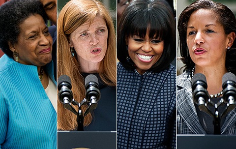 Myrlie Evers-Williams, Samantha Power, Michelle Obama and Susan Rice — unwavering women who all drew headlines this week. Four women who dominated headlines this week could not be more different from one another. But each one, we are told, possesses sharp elbows. President Obama used this basketball analogy to describe his newly-picked national security adviser Susan Rice. Actually, she did play basketball in college, but over time has acquired an even tougher reputation in foreign policy circles. You can imagine how well that goes over in that mostly-male world. Samantha Power, who has been nominated to replace Rice at the U.N. Ambassador, is no shy flower either. Power won a Pulitzer Prize at the age of 32 for her 2003 book “A Problem From Hell: America and the Age of Genocide.” She’s the Obama campaign aide who was forced to resign in 2008 after she referred to Hillary Clinton as a “monster.” More important, she has made a career out of telling governments what they don’t want to hear. Myrlie Evers-Williams, the widow of civil rights activist Medgar Evers, has spent the 50 years since her husband’s brutal murder redefining what it means to be a “civil rights widow.” Unlike Coretta Scott King and Betty Shabazz, both now deceased, she remarried and launched her own, independent civil rights career when she was elected chairman of the NAACP. And then there is Michelle Obama, whose carefully manicured image as a mom-in-chief and backyard gardener has always sought to mask the straightforward Chicago lawyer inside. She let loose a little this week when a heckler interrupted while she was speaking at a fundraiser, threatening to walk out if the woman did not stop. Presidents must remain calm when they are harassed in public or pressed to comment on unpalatable issues. Spouses, whose lives are more aggressively roped off from prying eyes, always seem more likely to snap. Think Hillary Clinton — she of the “vast right wing conspiracy” — or Barbara Bush, who flatly told an interviewer recently that her son Jeb should not run for president. It helps to take a deep breath when male public figures ranging from governors to hedge fund managers opine about how the world went askew once women started working and having babies — as if many of their mothers had not done the same. For women in the public eye, the response must be measured. Each is intimately familiar with a world of shifting standards. Having sharp elbows was never previously considered a negative quality for a national security adviser — unless her name was Condoleezza Rice. That’s got to get old. Even though Myrlie Evers had already made a huge sacrifice for the civil rights movement, the NAACP was sharply divided when she made a leadership bid. She won election by only one vote. And Power, even while standing in the Rose Garden this week, candidly described the opportunities and the limits of the United Nations post she will assume if confirmed by the Senate. “I have seen U.N. aid workers enduring shellfire to deliver food to the people of Sudan,” she said. “Yet I’ve also see U.N. peacekeepers fail to protect the people of Bosnia.” The time will come, I suppose, where we stop being surprised that women who have advanced degrees, raised children and have seen more war and grief than many of those who criticize them, succeed or fail on pure merit. But until then, I can only hope our daughters are watching. Top photos by Pete Souza/White House, Jim Watson/AFP/Getty Images, Kevin Lamarque/Reuters and Jim Watson/AFP/Getty Images A free press is a cornerstone of a healthy democracy. Support trusted journalism and civil dialogue. Donate now