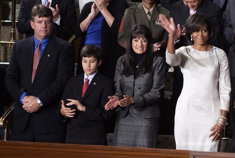 First lady Michelle Obama (right) at the 2011 State of the Union. Photo by Joshua Roberts/Bloomberg via Getty Images. The White House announced the list of guests that will be joining Michelle Obama in the first lady's box for the State of the Union speech Tuesday evening. As in years past, they were selected for their service, for an outstanding contribution they made to the country over the past year, and in some cases, for political reasons. Along with Dr. Jill Biden, the wife of Vice President Joe Biden, and Valerie Jarrett, longtime friend and adviser to the Obama family, the guests who will watch President Obama deliver his speech from the seats overlooking the House chamber include: Debbie Bosanek, the now famous tax-paying secretary of Warren Buffet. Buffet, or more specifically the tax policy named after him, the "Buffet Rule," is expected to figure prominently in the speech. Laurene Powell Jobs, founder and chairwoman of the Emerson Collective and widow of Apple co-founder Steve Jobs Astronaut Mark Kelly, husband of Rep. Gabrielle Giffords, D-Ariz., who also is attending the speech -- her last State of the Union before her resignation becomes official. She continues to recuperate from being shot in the head at a public event in Tucson a year ago. - Several members of the Armed Services, including Army Sgt. Ashleigh Berg, who served two tours of duty in Iraq; Adm. William McRaven who lead the Joint Special Operations Command operation that culminated in the killing of al-Qaida leader Osama bin Laden in May; and Air Force Col. Ginger Wallace, who attended a "pinning on" ceremony with her partner last fall immediately following the repeal of Don't Ask, Don't Tell, according to a White House release. Adrienne Howard, whose husband Colby serves as a commander in the Navy and has worked with Mrs. Obama's Joining Forces initiative for military families. Since Mr. Obama is expected to hit the theme of American manufacturing, the industry will be well-represented. Bryan Ritterby and Jackie Bray, both of whom lost their jobs but were retrained at local community colleges to perform highly skilled manufacturing jobs, will be in attendance. Joining them will be Alicia Boler-Davis, a GM plant manager from Detroit; Bruce Cochrane, president and CEO of Lincolnton Furniture; and Hiroyuki Fujita, founder, president and CEO of Quality Electrodynamics. Entrepreneur Mike Krieger, a citizen of Brazil who has applied for a green card to stay in the country after founding the 15 million user social media site Instagram San Antonio Mayor Julián Castro, who has introduced plans to build one of the nation's largest solar projects through his city's municipally owned utility Juan Jose RedÃn, an immigrant attorney from North Hollywood who went to college with the aid of California's Assembly Bill 540, which allows undocumented immigrants to attend state schools at the resident rate Mahala Greer, a student in Colorado who will be joining the service group Teach for America Cancer survivor Adam Rapp of Illinois, who received health care under the president's health care law, the White House said Joan Miller, a Florida resident who almost lost her home to foreclosure but was able to refinance under the Home Affordable Refinance Program, according to the White House Lorelei Kilker, who was awarded damages after suffering workplace discrimination from the EEOC and the Equal Pay Task Force Amber Morris, an unemployed law school graduate who responded to the president's "What Does 40 Mean to You?" and Pennsylvania teacher Sara Ferguson, who worked without pay as her school district faced bankruptcy The NewsHour is covering the speech in a special 9 p.m. ET broadcast. Join our online coverage as well. A free press is a cornerstone of a healthy democracy. Support trusted journalism and civil dialogue. Donate now