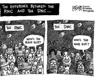 Updated Sept. 5: Stantis and Rogers joined the throngs of journalists that left Tampa and went on to Charlotte, N.C., for the Democratic National Convention. We caught up with them again and talked about how their friendship and opposing political views affect their political satire of the conventions. And for the sake of parity, we challenged them to another drawing duel. The challenge this time: juxtapose the GOP and the Democratic events. Click on thumbnail images to see the finished cartoons from the DNC duel: Original Story: Newspaper editorial cartoonists Rob Rogers and Scott Stantis spent a lot of time on what was supposed to be the first day of the Republican National Convention drawing themselves and each other. There wasn't much fodder yet at the RNC, which was delayed a day due to the encroaching Hurricane Isaac. Most delegates who were in town were out celebrating and fundraising at invitation-only parties. So Rogers and Stantis, of the Pittsburgh Post-Gazette and Chicago Tribune, respectively, allowed us to engage them in a "draw off." We gave them a general topic: the spectacle of the convention in Tampa, where more than 10,000 media descended to cover a highly choreographed three-night political television event. The friends, part of a cohort of about 40 full-time editorial cartoonists working in the United States, have expanded their craft from traditional newsprint to blogs and social media over the past few years. Stantis frequently appears on talk radio -- at one point he hosted a drive-time show -- and regularly runs caption contests. Rogers plans to produce a documentary film from his trip to the conventions, which he funded through a crowdsourcing campaign on Indiegogo. They also happen to sit on opposite sides of the spectrum -- Rogers a liberal and Stantis a conservative. They function for their hometowns and in national politics as visual columnists, who can analyze and opine about politics as well as traditional writers. At one point in our conversation, they talked about the importance of GOP presumptive presidential candidate Mitt Romney demonstrating his appeal this week -- Stantis calling it one of the most essential conventions of any campaign. Their tactics include working with metaphors, embracing exaggeration, and finding a great pun. Sometimes slightly off-color topics find their way in, too. We'll plan to host a second draw-off during the Democratic National Convention next week in Charlotte, N.C. A free press is a cornerstone of a healthy democracy. Support trusted journalism and civil dialogue. Donate now