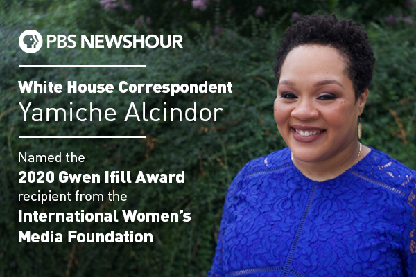 Sep 29 Yamiche Alcindor Named IWMF 2020 Gwen Ifill Award Recipient The International Women’s Media Foundation (IWMF) yesterday named PBS NewsHour White House correspondent Yamiche Alcindor its 2020 Gwen Ifill Award recipient. The award recognizes a remarkable woman journalist of color whose work embodies the legacy of… Continue reading