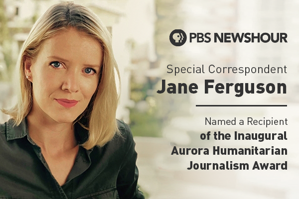 Oct 19 Jane Ferguson Named a Recipient of the Inaugural Aurora Humanitarian Journalism Award The Aurora Humanitarian Initiative will today present PBS NewsHour special correspondent Jane Ferguson with the inaugural Aurora Humanitarian Journalism Award during the first event of their “Gratitude in Action” speaker series. Inspired by PBS NewsHour anchor Judy Woodruff… Continue reading