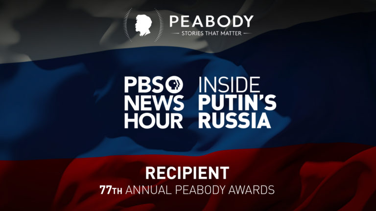 Apr 24 PBS NewsHour’s 2017 Series “Inside Putin’s Russia” Named Recipient of Peabody Award WASHINGTON, DC (April 24, 2018) — The Peabody Awards Board of Jurors today named PBS NewsHour’s series “Inside Putin’s Russia” a recipient of a Peabody Award for excellence in the News category. The series, nearly one hour of programing across one… Continue reading