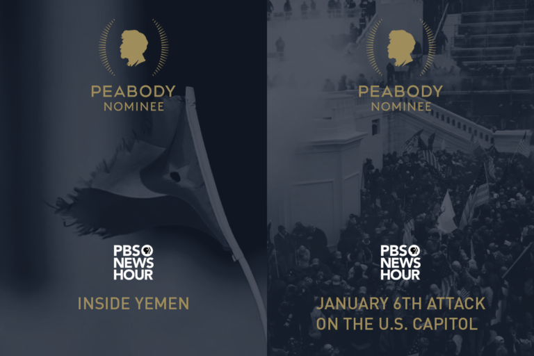Apr 13 PBS NewsHour Named Recipient of Two Peabody Awards Nominations Arlington, VA (April 13, 2022)–PBS NewsHour today received two Peabody nominations for its series “Inside Yemen,” which provided a rare insight into the Yemeni war, as well as for its extensive coverage on the day of the January… Continue reading