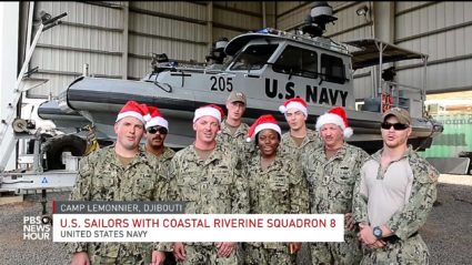 Leave a comment 0comments Share Copy URL https://www.pbs.org/newshour/show/military-musicians-sing-carol-of-the-bells Email Facebook Twitter LinkedIn Pinterest Tumblr Share on Facebook Share on Twitter Transcript Audio As part of a NewsHour Christmas tradition, the military and the Defense Media Activity Agency provide a special holiday performance of military service personnel playing and singing the “Carol of the Bells.” Read the Full Transcript Notice: Transcripts are machine and human generated and lightly edited for accuracy. They may contain errors. Nick Schifrin: Finally tonight: an annual "NewsHour" Christmas tradition.Last night, we brought you the American troops from around the world singing "Rudolph the Red-Nosed Reindeer."Tonight, we bring you one of our most popular songs, prepared by the military and the Defense Media Activity Agency.Here are American service men and women from around the world singing "Carol of the Bells."(SINGING) Listen to this Segment Watch Watch the Full Episode PBS NewsHour from Dec 25, 2018