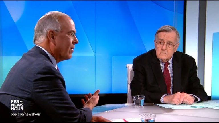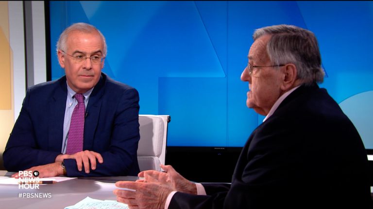 Mar 13 Watch 11:58 Shields and Brooks on leadership in a time of crisis Syndicated columnist Mark Shields and New York Times columnist David Brooks join Judy Woodruff to discuss the week’s political news, including the unique magnitude of the novel coronavirus pandemic, how President Trump is handling the crisis, what the government should… Continue watching