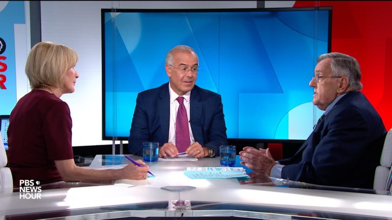 Sep 20 Watch 12:13 Shields and Brooks on the whistleblower complaint, Saudi oil attack Syndicated columnist Mark Shields and New York Times columnist David Brooks join Judy Woodruff to discuss the week’s political news, including reports of a whistleblower complaint that might involve President Trump, the debate about whether a sitting president can commit… Continue watching