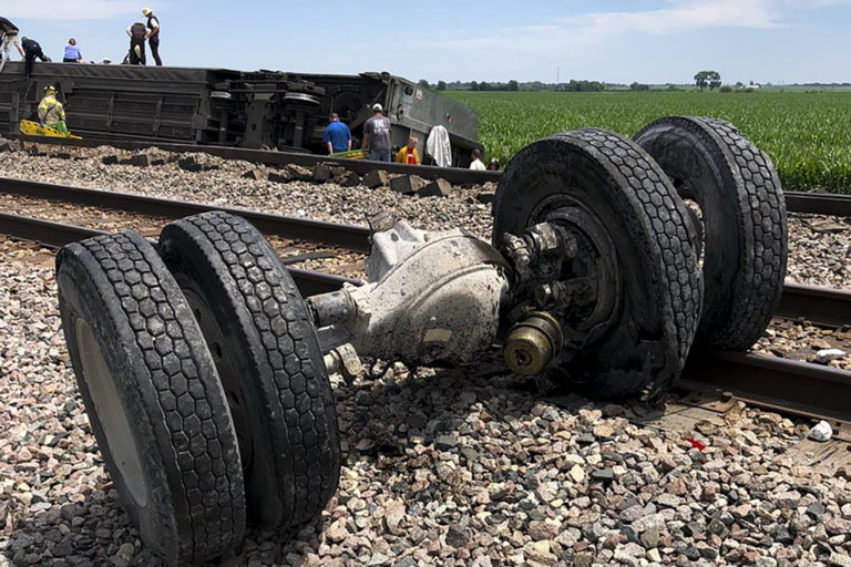 Jun 27 3 people killed after Amtrak train hits truck, derails in Missouri By Associated Press An Amtrak train traveling from Los Angeles to Chicago derailed in Missouri after colliding with a dump truck. Spokeswoman Kimberly Woods says initial reports are that some people were injured when the Southwest Chief struck the dump truck near Mendon. Continue reading