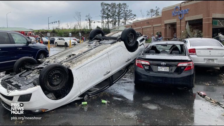 Apr 01 Watch 7:26 Deadly storms, tornadoes lay waste to large areas of South and Midwest By John Yang, Harry Zahn A massive line of severe weather wreaked havoc from the Deep South to the Great Lakes. An estimated 85 million people were in the path of the storms, and at least 21 people were killed. We hear from residents affected… Continue watching