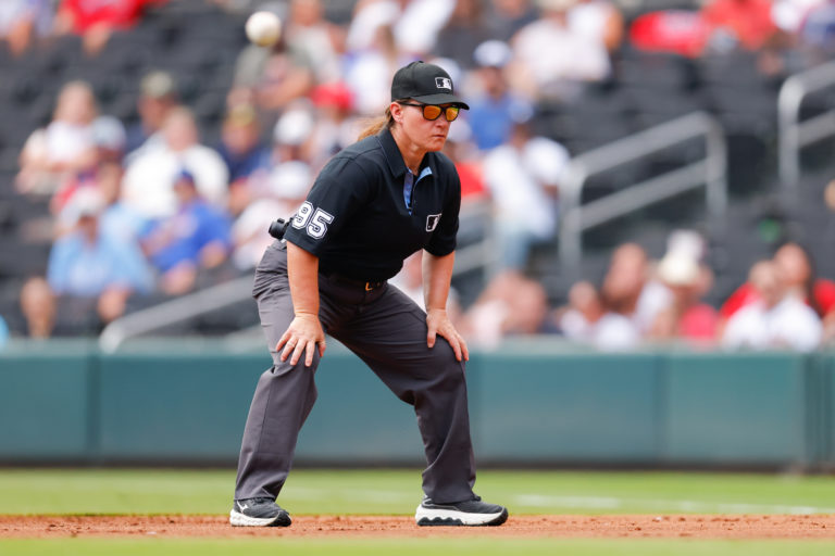Aug 09 Watch 5:31 What Jen Pawol’s debut means for the future of women umpires in Major League Baseball By John Yang, Satvi Sunkara Saturday in Atlanta, Jen Pawol took the field as the first woman to umpire a regular-season game in Major League Baseball’s nearly 150-year history. She was on the bases this afternoon for both games of a doubleheader between the Miami… Continue watching