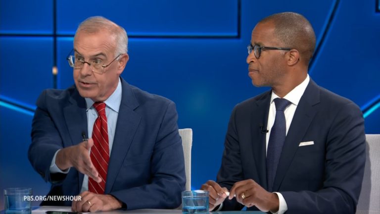 Sep 19 Watch 11:18 Brooks and Capehart on censorship and authoritarianism By William Brangham New York Times columnist David Brooks and Jonathan Capehart of MSNBC join William Brangham to discuss the week in politics, including the suspension of Jimmy Kimmel’s show and whether the government is taking another dangerous step into censorship and authoritarianism. Continue watching