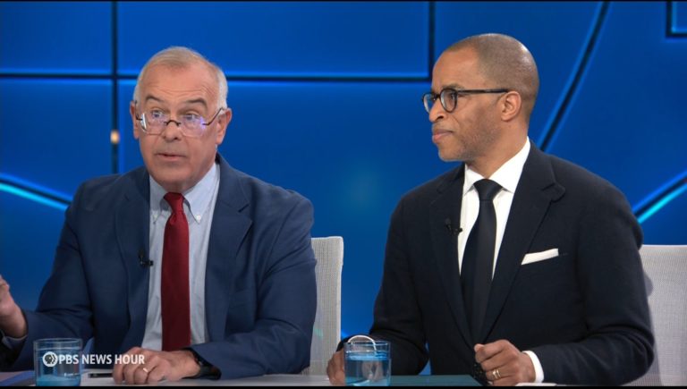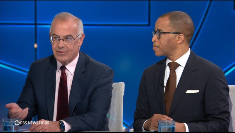 Apr 25 Watch 9:31 Brooks and Capehart on Trump’s reaction to public pressure By Amna Nawaz, Ian Couzens New York Times columnist David Brooks and Washington Post associate editor Jonathan Capehart join Amna Nawaz to discuss the week in politics, including the Trump administration walking back decisions on trade and student visas amid public pressure, the FBI arresting… Continue watching