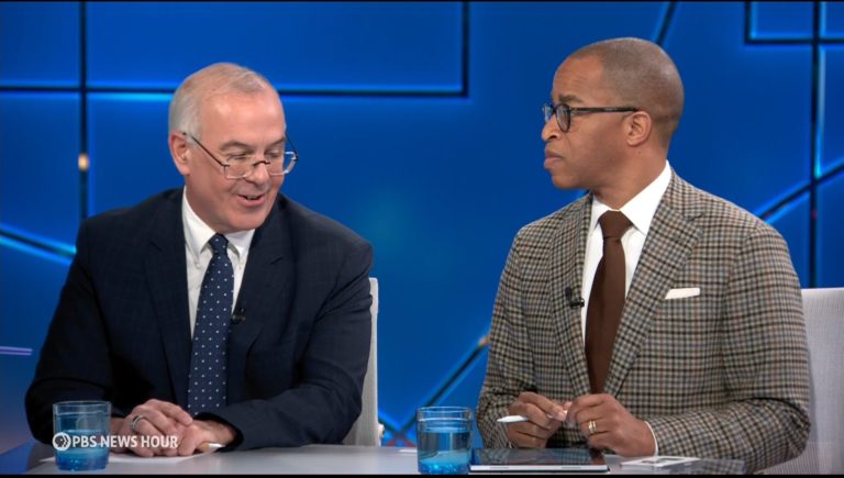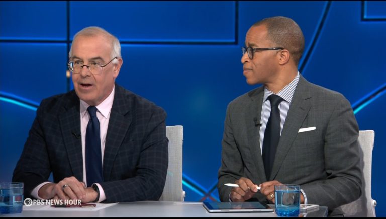 Feb 14 Watch 9:33 Brooks and Capehart on the Trump administration’s challenge to the judiciary branch By Amna Nawaz, Matt Loffman, Taylor Bowie New York Times columnist David Brooks and Washington Post associate editor Jonathan Capehart join Amna Nawaz to discuss the week in politics, including the ongoing challenge to constitutional guardrails and the position of the United States on the global stage. Continue watching