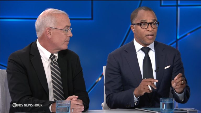 Oct 18 Watch 10:13 Brooks and Capehart on key moments in the 2024 race in the final weeks before Election Day By Amna Nawaz, Ali Schmitz New York Times columnist David Brooks and Washington Post associate editor Jonathan Capehart join Amna Nawaz to discuss the week in politics, including how the death of Hamas leader Yahya Sinwar could mark a turning point in the war in… Continue watching
