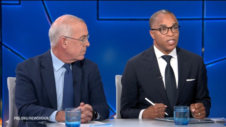 Nov 01 Watch 10:33 Brooks and Capehart on who holds the upper hand in the presidential race By Amna Nawaz, Ali Schmitz New York Times columnist David Brooks and Washington Post associate editor Jonathan Capehart join Amna Nawaz to discuss the week in politics, including what to watch in the final days of voting, the rhetoric of the campaign, what will happen… Continue watching
