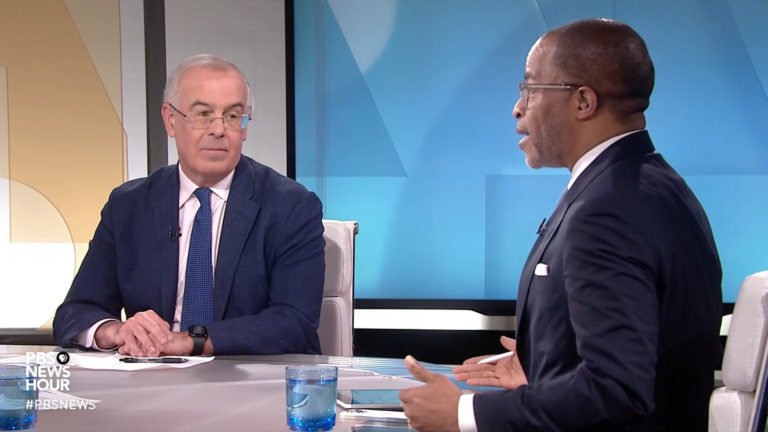 May 03 Watch 10:26 Brooks and Capehart on campus protests and Trump’s vision for a 2nd term By William Brangham, Kyle Midura New York Times columnist David Brooks and Washington Post associate editor Jonathan Capehart join William Brangham to discuss the week in politics, including protests against the war in Gaza growing on college campuses and Donald Trump gives the clearest vision… Continue watching