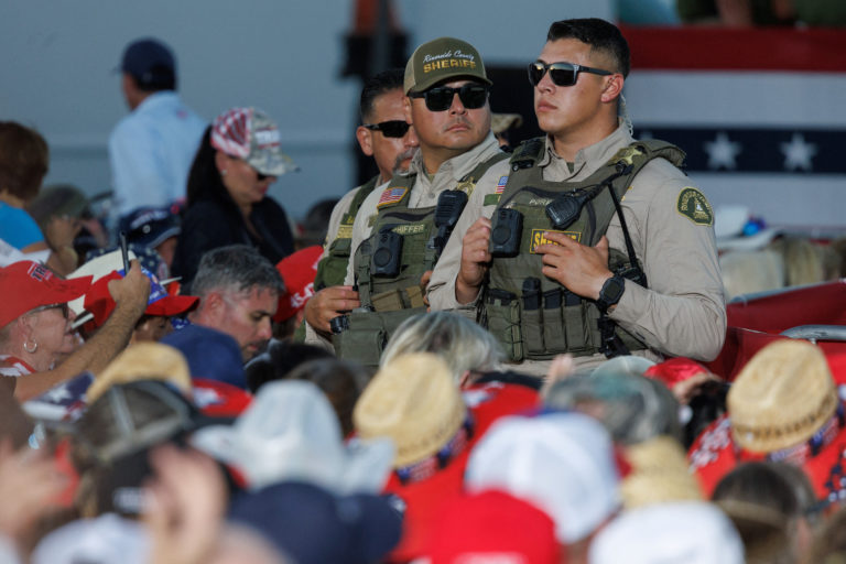 Oct 13 Man with guns arrested at checkpoint outside Trump rally in California, authorities say By Associated Press A Nevada man with a shotgun, a loaded handgun and ammunition in his vehicle was arrested at a security checkpoint outside Donald Trump's rally Saturday night in the Southern California desert, authorities said Sunday. Continue reading