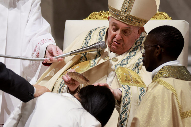 Mar 30 Pope presides over Easter Vigil at the Vatican after last-minute Good Friday absence By Nicole Winfield, Associated Press Pope Francis presided over the Vatican's somber Easter Vigil service on Saturday night, delivering a 10-minute homily and baptizing eight people, a day after suddenly skipping the Good Friday procession at the Colosseum as a health precaution. Continue reading