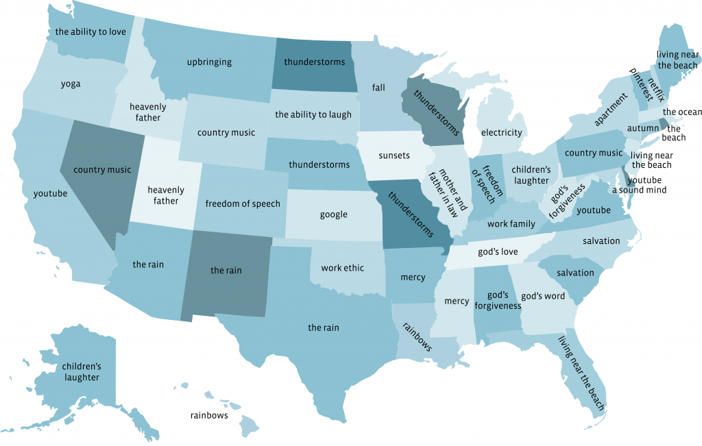 Nov 27 Hawaiians thankful for rainbows, men most thankful for their wives, according to Facebook By Justin Scuiletti The Facebook Data Science team compiled "anonymized, aggregate data" from the status updates of users in the United States -- drawing from entries that participated in a status challenge asking friends and families to share what they are most… Continue reading