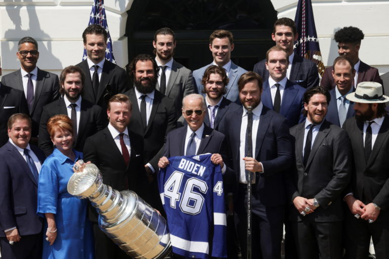 Apr 25 WATCH: Biden welcomes Stanley Cup champions, Tampa Bay Lightning, to the White House By Stephen Whyno, Associated Press Biden avoided politics in honoring the NHL's Tampa Bay Lightning for winning the Stanley Cup in each of the past two seasons. It was a rare break for the president amid his administration's response to Russia's war in Ukraine. Continue reading