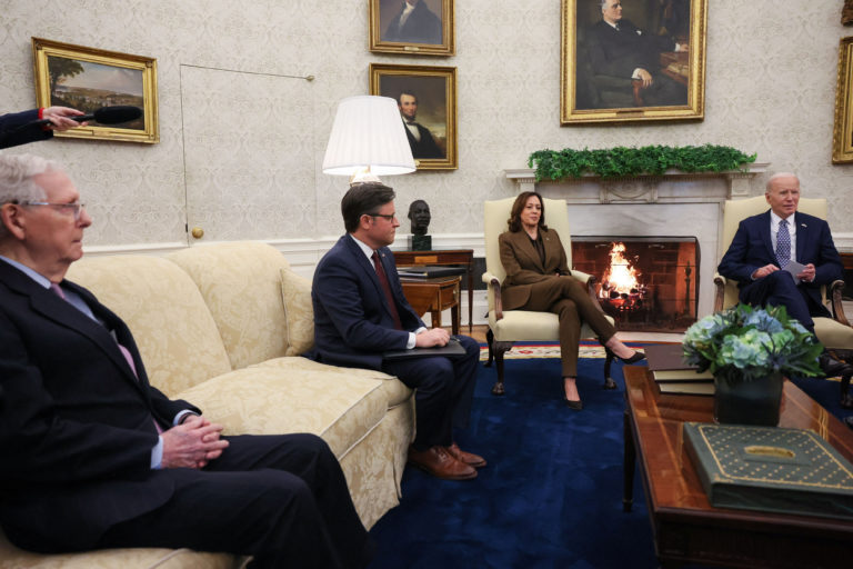 Feb 27 Watch 6:09 Biden, congressional leaders meet at White House with potential shutdown looming By Lisa Desjardins, Saher Khan, Ian Couzens The top four leaders in Congress met with President Biden in the Oval Office to discuss how to fund the government and what should happen next for U.S. support of Ukraine. Congress faces a precarious stack of crises this week… Continue watching