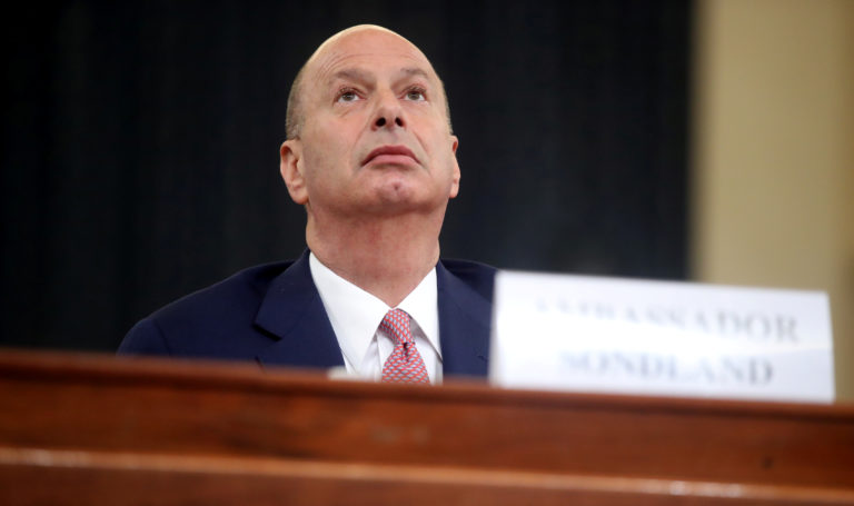 Nov 20 Sondland denies carrying out ‘rogue diplomacy’ in Ukraine By Associated Press Trump’s EU ambassador is testifying Wednesday in the House’s impeachment inquiry into Trump’s pressure on Ukraine to investigate Democrat Joe Biden and his son while holding up military aide. Continue reading