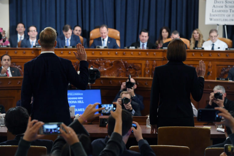 Nov 21 Hill dismisses Sondland’s Ukraine work as ‘domestic political errand,’ not foreign policy By Daniel Bush Thursday's testimony from Fiona Hill and another career diplomat concluded two weeks of public impeachment hearings by the House Intelligence Committee. Both Democrats and Republicans are digging in as the investigation shifts to the Judiciary Committee and a likely House… Continue reading