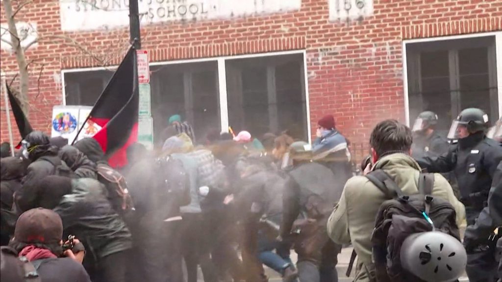 Jan 20 Protesters corralled by police as Donald Trump takes office By News Desk Hundreds of protesters were corralled by police in Washington, D.C. this morning before Donald Trump took the oath of office. Many of them seemed to follow the "Black bloc" style of protests, which can be more violent and emphasize anarchy… Continue reading