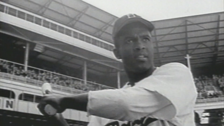 Apr 17 Watch 5:30 Jackie Robinson’s legacy endures 75 years after breaking baseball’s color barrier By Geoff Bennett, Mike Fritz Jackie Robinson first took the field for the Brooklyn Dodgers 75 years ago this week, becoming the first Black man to play in the modern major leagues. It’s been nearly 50 years since Jackie Robinson's death, but he remains one… Continue watching
