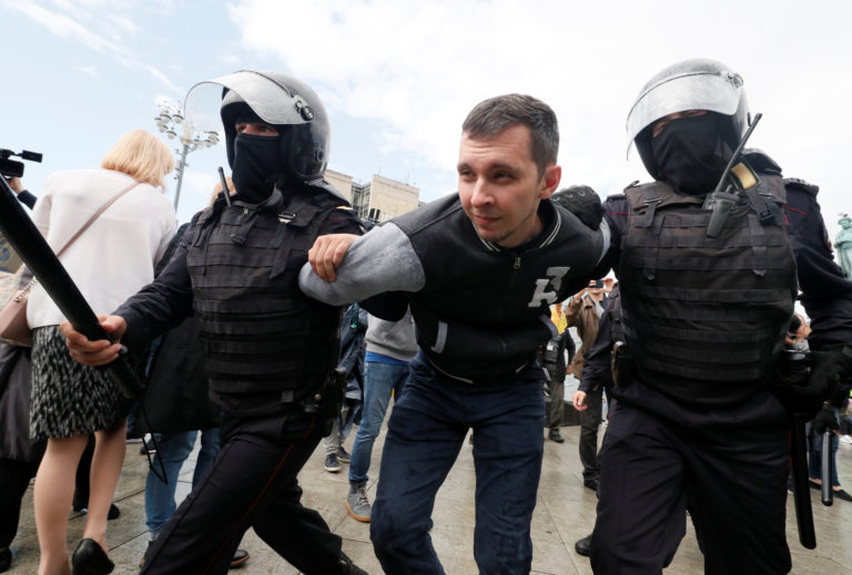 Aug 03 Moscow police detain more than 800 at protest, monitor says By Jim Heintz, Associated Press Police in Moscow cracked down hard on an unsanctioned election protest for the second weekend in a row Saturday, detaining more than 800 people at a rally against the exclusion from city council contests of some independent and opposition candidates,… Continue reading