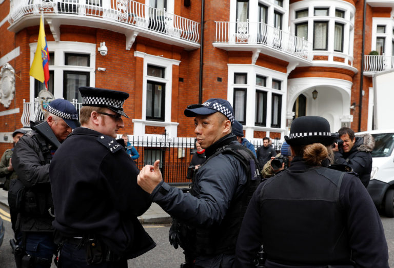 Apr 05 UK police outside Ecuador embassy amid WikiLeaks tweets British police gathered outside the Ecuadorian Embassy in London after tweets from WikiLeaks alleging Julian Assange could be expelled from the building within "hours to days."… Continue reading