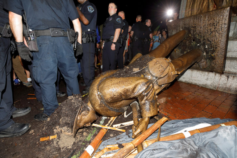 Aug 25 7 arrested in protest over torn-down Confederate statue By Associated Press Officials say seven people have been arrested at a rally calling for a century-old Confederate statue at the University of North Carolina to be returned after it was yanked down five days ago. Continue reading