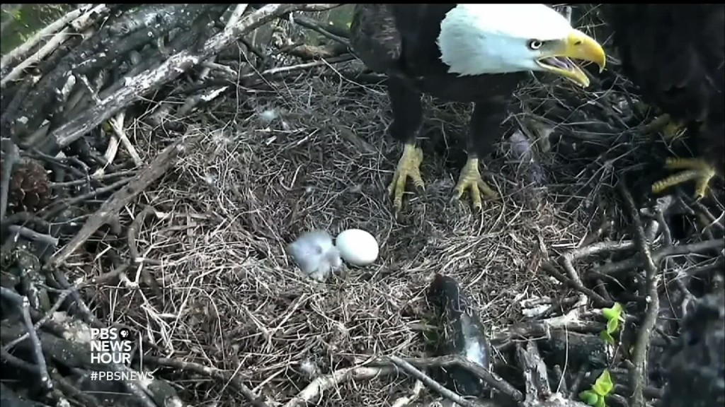 Mar 18 Watch 0:55 The stork brings an eaglet: Bald eagle hatches at National Arboretum By PBS News Hour As they welcomed a new member of the family this morning, all eyes were on “Mr. President” and “The First Lady” -- not the Obamas, but a pair of bald eagles nesting at the National Arboretum. A webcam captured their… Continue watching