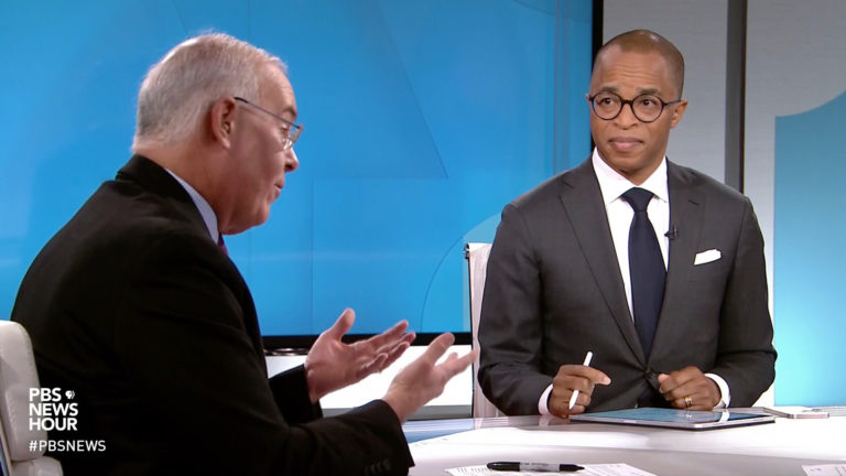 Dec 01 Watch 11:07 Brooks and Capehart on the ouster of George Santos By Amna Nawaz, Ali Schmitz New York Times columnist David Brooks and Washington Post associate editor Jonathan Capehart join Amna Nawaz to discuss the week in politics, including George Santos getting ousted from the House, the GOP presidential primary race heating up with Nikki Haley… Continue watching