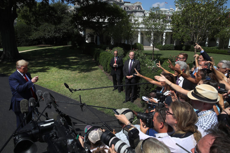 Aug 21 Watch 5:01 What Trump is saying about gun control and American Jews President Trump spoke extensively with reporters outside the White House Wednesday, answering questions on gun policy, Russia, the economy and even birthright citizenship. Yamiche Alcindor, who was there in person, joins William Brangham to discuss key takeaways, including Trump’s alignment… Continue watching