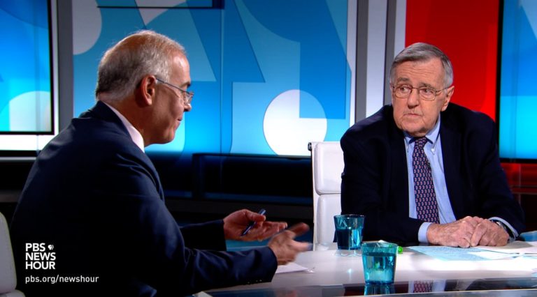 Jun 01 Watch 12:33 Shields and Brooks on Trump trade war risks, president’s political pardons Syndicated columnist Mark Shields and New York Times columnist David Brooks join Judy Woodruff to discuss the week’s news, including the Trump administration’s move to impose tariffs on U.S. allies, the president’s move to pardon conservative pundit Dinesh D'Souza, reactions… Continue watching