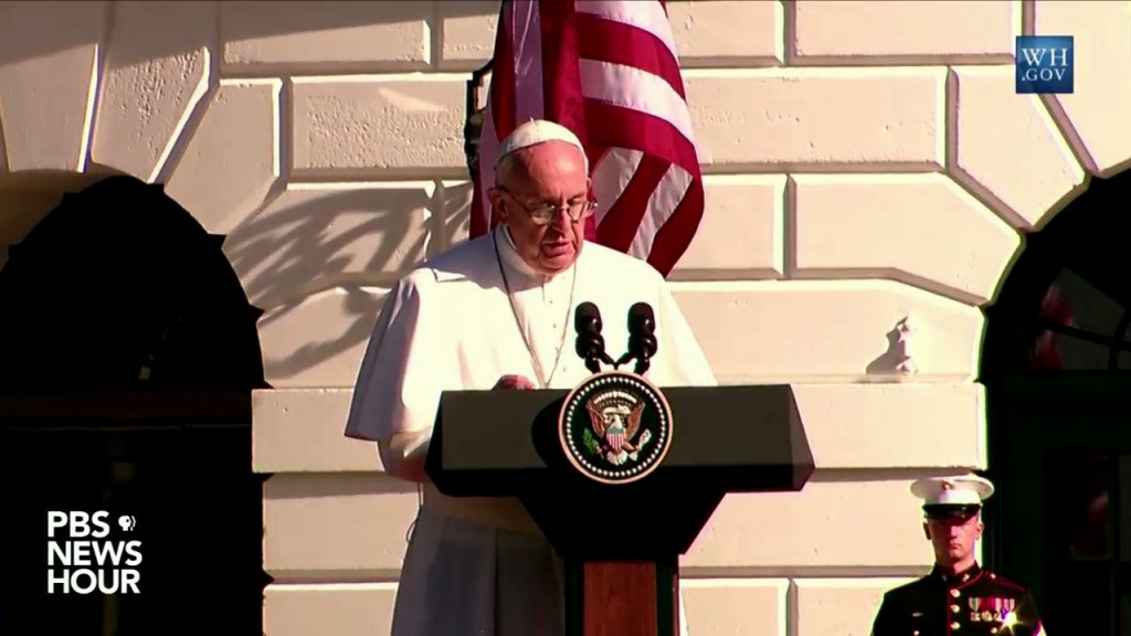 Sep 23 Watch 8:39 Pope Francis draws big crowds and high spirits in Washington By PBS News Hour Thousands turned out Wednesday to experience Pope Francis' visit to Washington. At the White House and at Mass held at the National Shrine of the Immaculate Conception, the pontiff addressed the urgency of global warming, respect for traditional marriage and… Continue watching