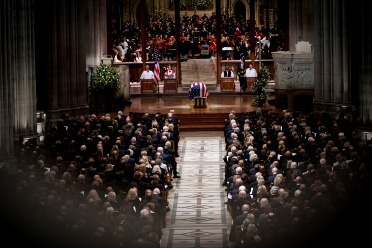 Dec 05 Watch 15:54 Washington bids farewell to President George H.W. Bush Family, friends, former presidents and foreign dignitaries gathered Wednesday to honor President George H.W. Bush at the National Cathedral in Washington, D.C. Among those eulogizing the American war hero and political patriarch was his oldest son, President George W. Bush,… Continue watching